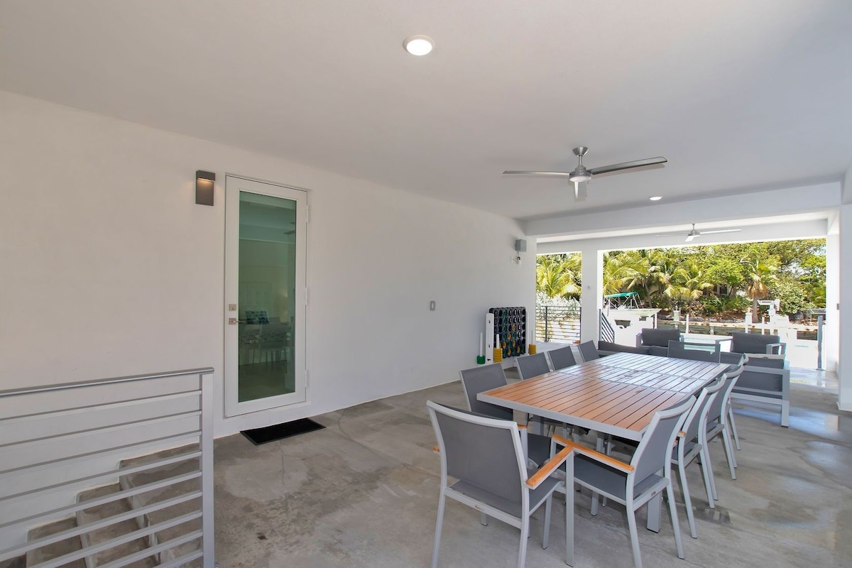No need to leave this 3-level, 5 bedroom/ 5 bathroom home, exquisitely built and meticulously designed. It is located just a 2 minute walk down the street to the beach and has direct access to the Atlantic Ocean. From the moment you drive down the street…curbside appeal, A+ 100!!! Has convenient under roof parking, while surrounded by lush tropical landscaping. On the first floor, a luxurious double bedroom suite with its own bathroom and walk-in closet provides guests with the privacy they may need. Just a step outside an oasis of fun awaits with a pristine pool (heated optional), infinity edge hot tub that displays an enchanting illumination glow by night, a summer kitchen with plenty of dining and seating area throughout, in addition to a variety of outdoor games that are guaranteed to provide hours and hours of family fun. Love the ocean? This is a perfect property indeed. A 5ft fish cleaning station, freezer chest and ice maker are conveniently located steps away from the 50-foot dock. This property accommodates several cars and even a boat trailer on premises.